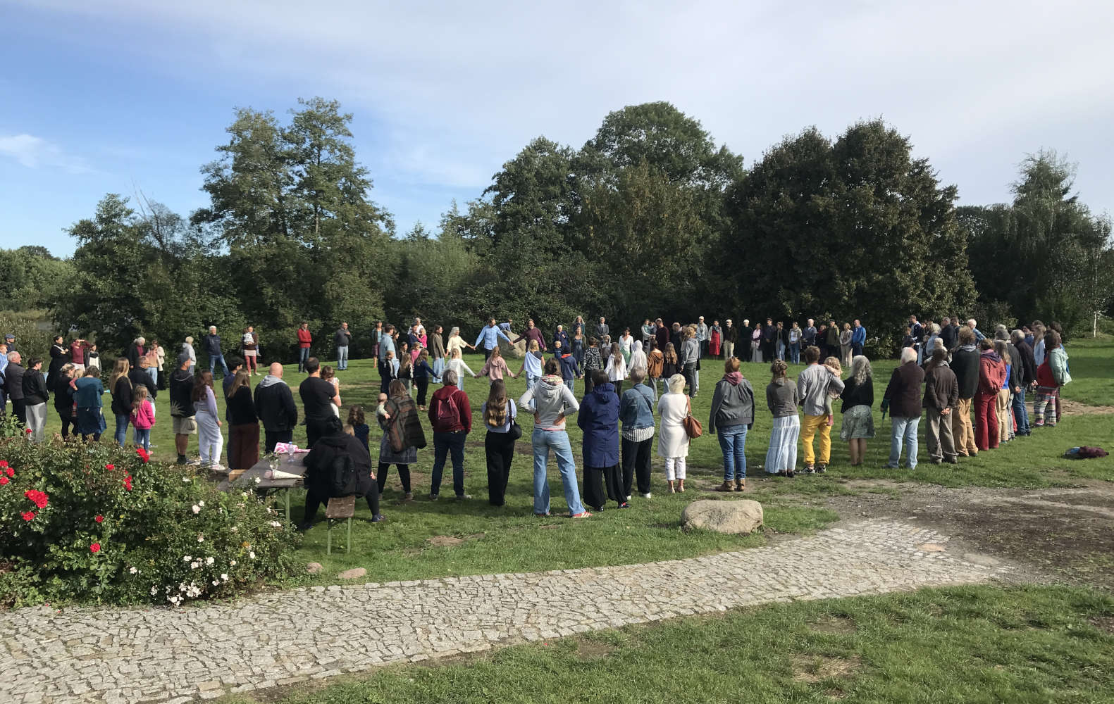 Zur Einschulungsfeier am 13. September kamen über 140 Gäste und bildeten einen Kreis fast so groß wie die Klanghauswiese. Die Kleine Dorfschule hat nun 50 Schüler in den Klassenstufen von 1 bis 10.